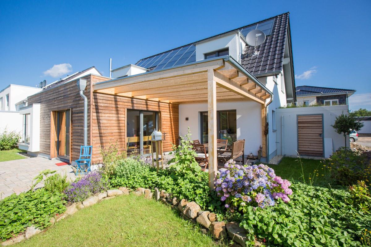 In einem Punkt haben die verschiedenen Einheiten des Reihenhauses doch eine wichtige Gemeinsamkeit: die Nachhaltigkeit. So verfügen alle Häuser über eine sehr gute Dämmung, die sich aufgrund der Holzrahmenbauweise leicht realisieren lässt. Lüftungsanlagen mit Wärmerückgewinnung und Solarthermie-Anlagen auf dem Dach, die für die Warmwasserbereitung genutzt werden, sorgen außerdem für einen umweltbewussten Energieeinsatz und langfristig geringe Betriebskosten. Sie möchten mehr über unsere maßgeschneiderten Konzepte für Reihen- und andere Wohnhäuser erfahren? Sprechen Sie uns gern an! Tel.: 05409 / 90585-10.