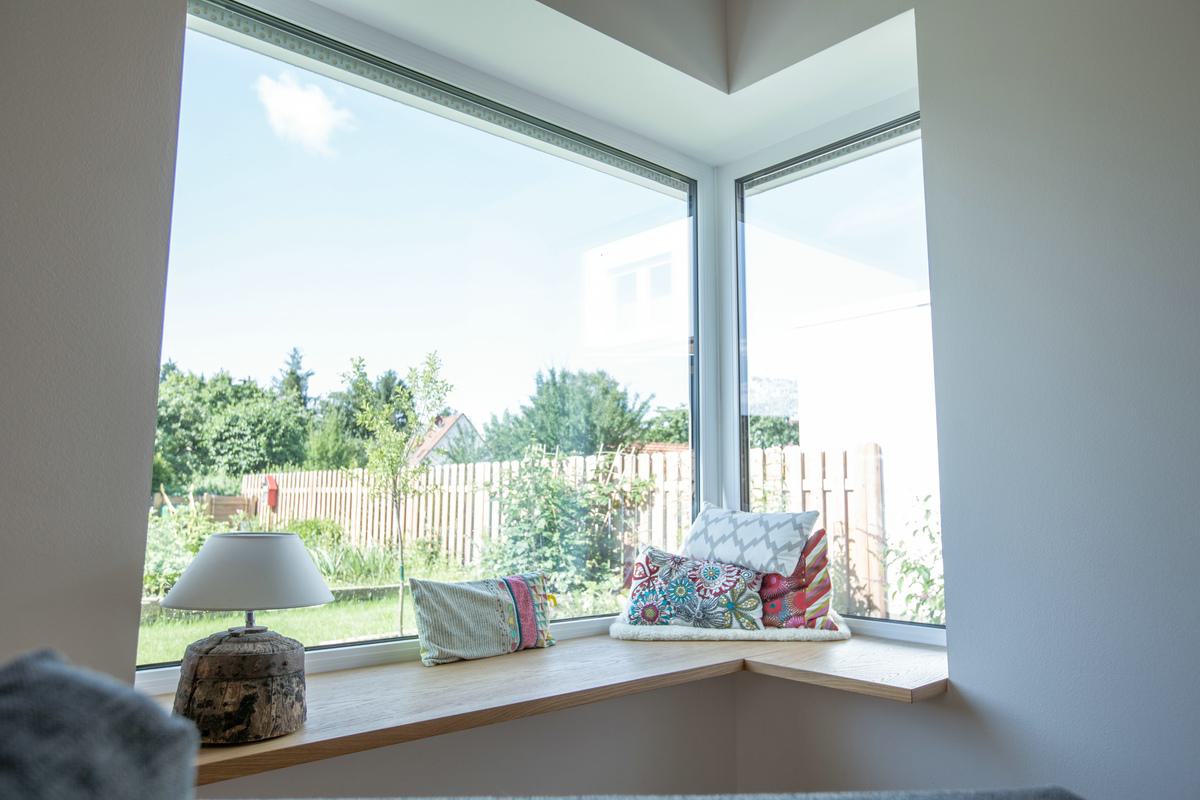 Dieses moderne Sonnenhaus im Effizienzhaus-40-Standard vereint nachhaltiges Bauen mit hohem Wohnkomfort. Das Haus wurde schlüsselfertig übergeben, mit Ausnahme der Heizungs- und Elektroarbeiten. Ein gemütliches Sitzfenster lädt zum Verweilen ein und die offene Holzbalkendecke verleiht dem Innenraum eine warme, natürliche Atmosphäre. Große Fensterflächen sorgen für ein lichtdurchflutetes Wohnambiente und ein angenehmes Wohngefühl.