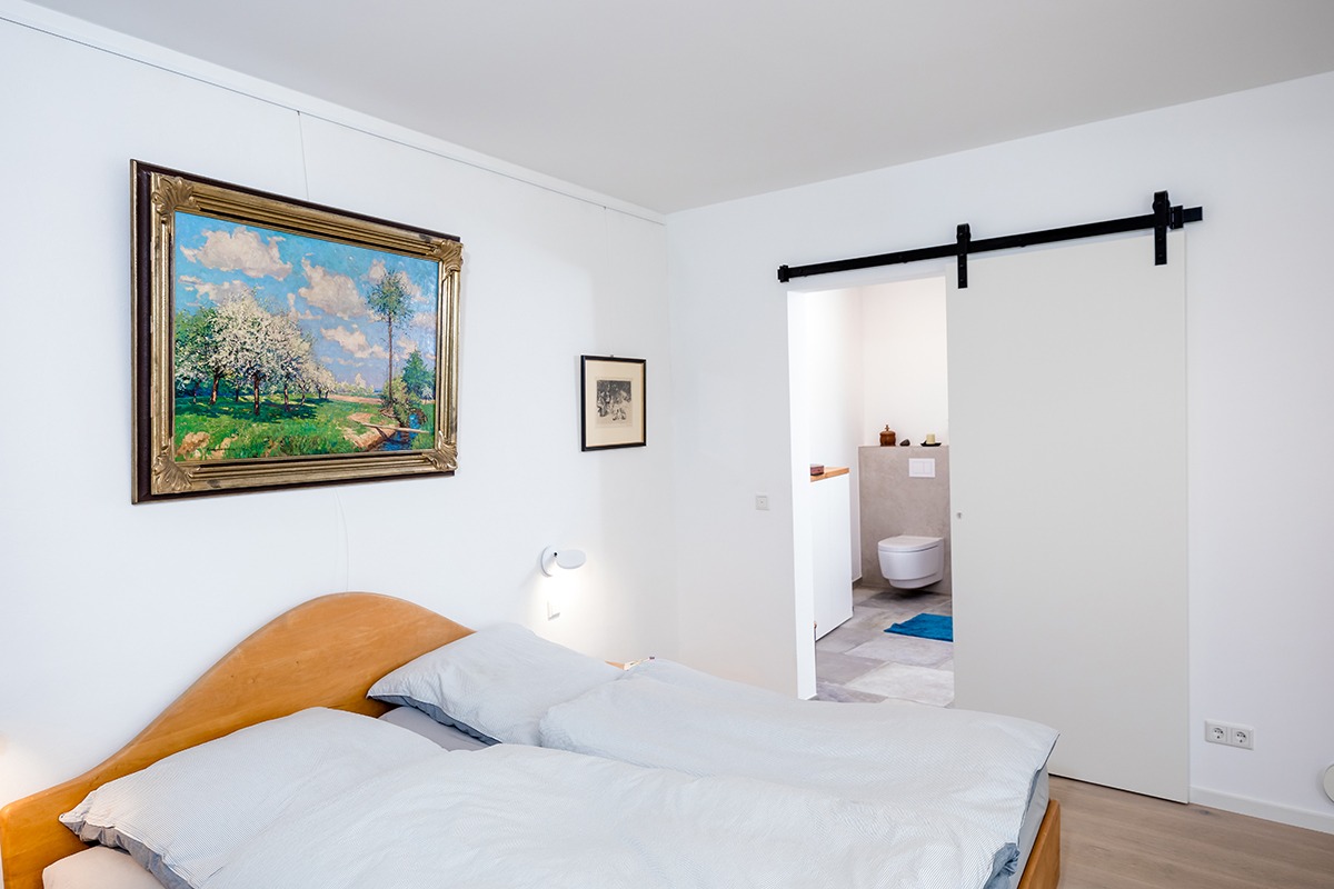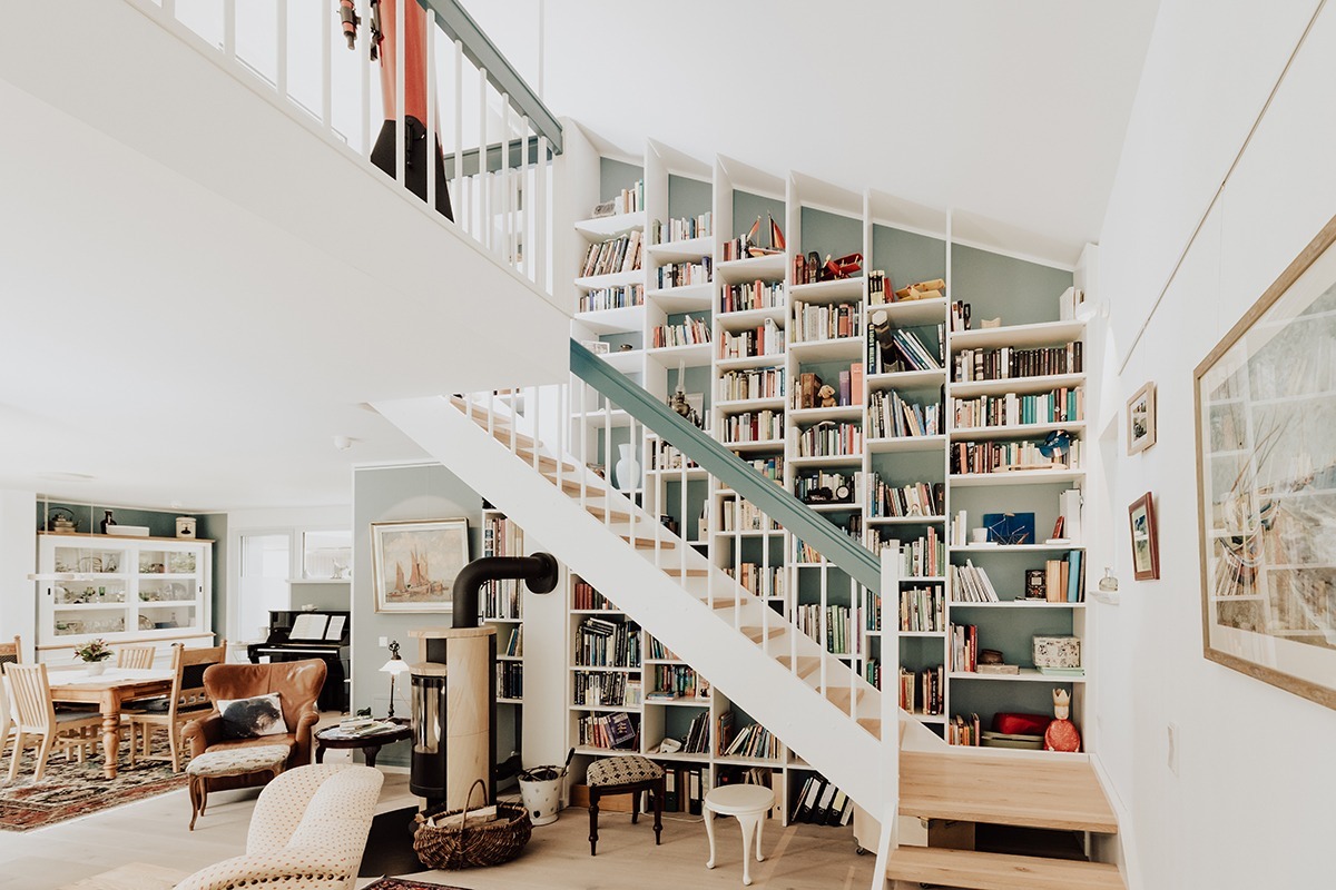 Zum einladenden Ambiente trägt ebenso das Zusammenspiel der weißen Wände und der in allen Gebäudeteilen reichlich verwendeten Hölzer bei. Der Holzofen im unteren Wohnbereich ist dabei höchst dekorativ und strahlt an den kälteren Tagen des Jahres nicht nur Wärme, sondern noch mehr Gemütlichkeit aus.