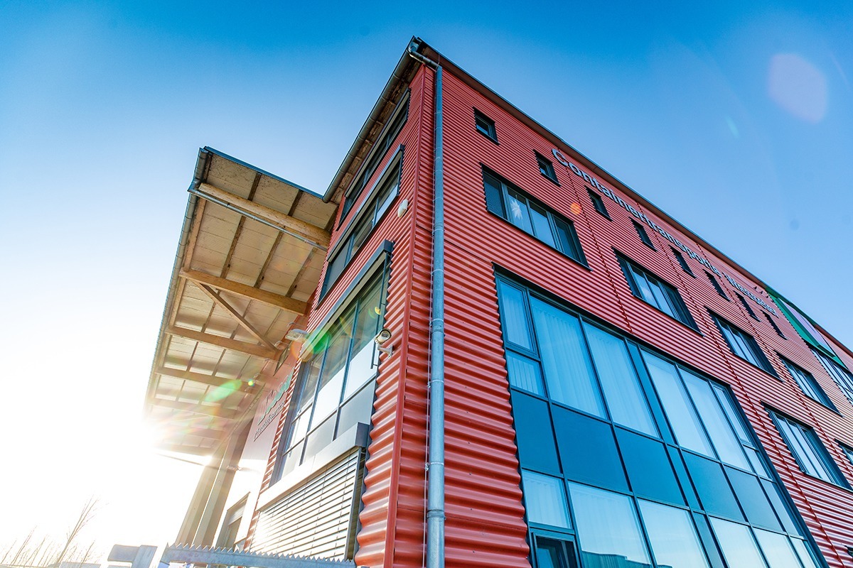 An der Straße Auf dem Platen entstand für den Containerdienst im Jahr 2010 schlüsselfertig ein viergeschossiges Gebäude in einer Mischbauweise, die die Vorteile des Holzrahmenbaus mit der Tradition des Stahlbetonbaus vereint. In Holzrahmenbauweise wurde der rund 1.200 Quadratmeter große Teil errichtet, in dem der Empfang, die Büros sowie Sozialräume und Ruhemöglichkeiten für die Lkw-Fahrer untergebracht sind. Hinterlüftete Blechfassaden bilden architektonisch ansprechende Abschlüsse.