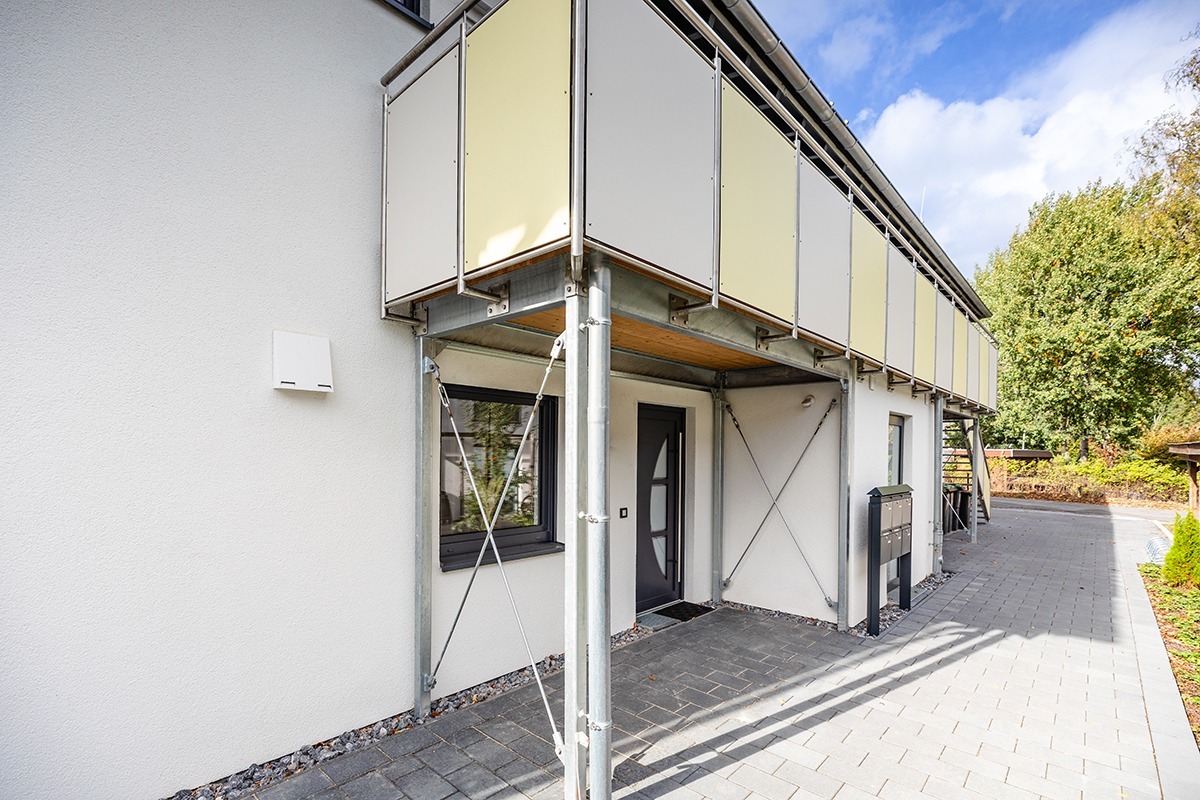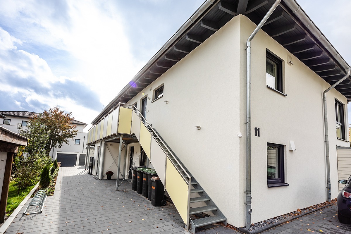 Die drei Wohneinheiten im Obergeschoss verfügen über eine Fläche von jeweils 58 Quadratmetern und sind mit Balkonen ausgestattet. Die beiden Erdgeschoss-Wohnungen (je 85 Quadratmeter) besitzen einen Zugang zum Garten und sind barrierefrei ausgelegt.