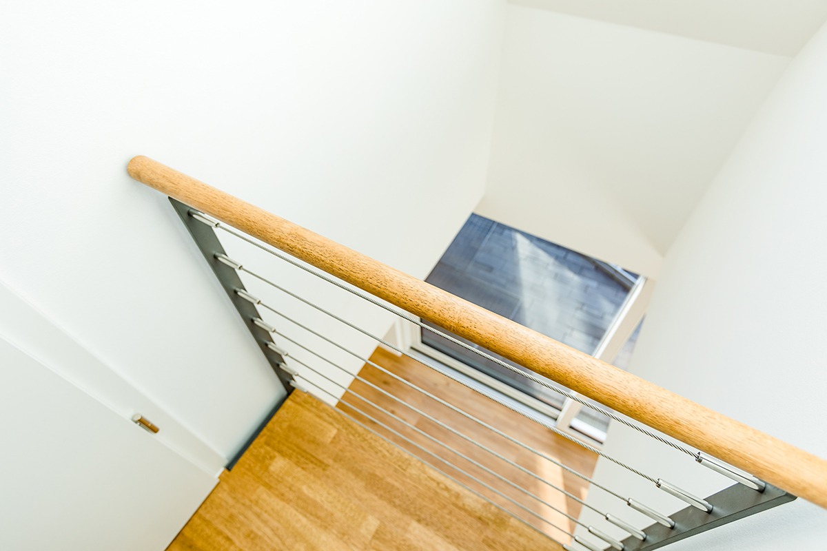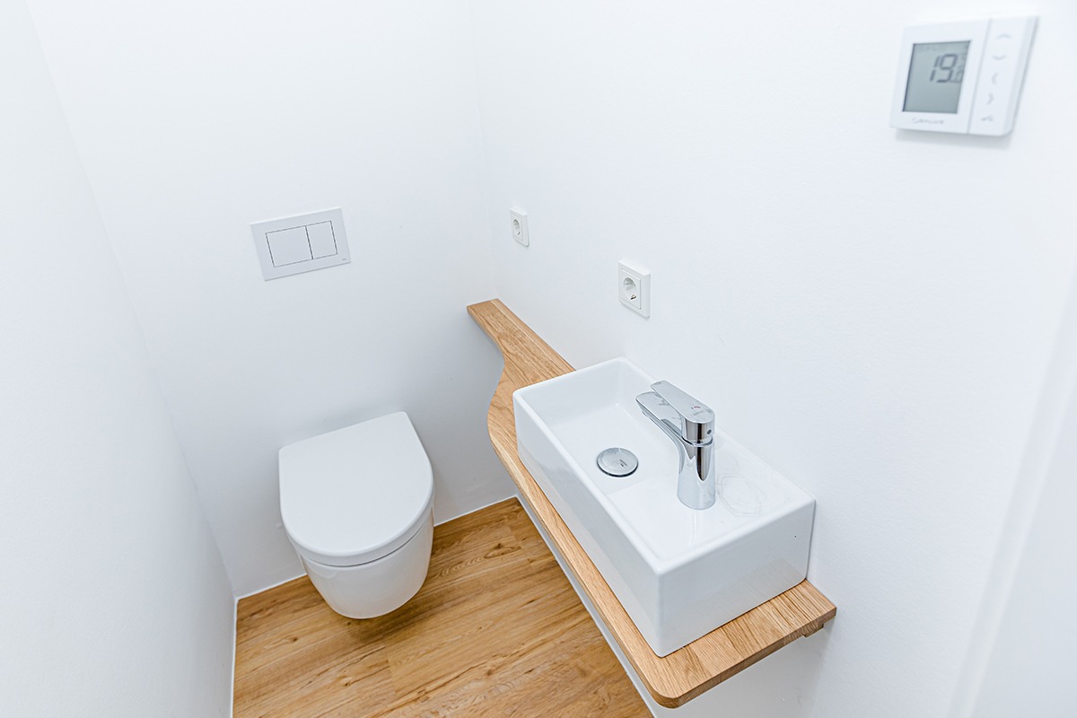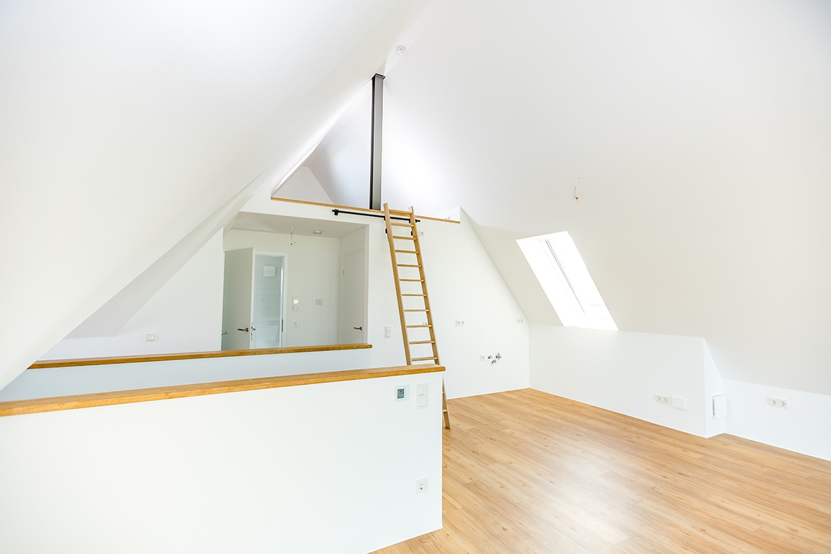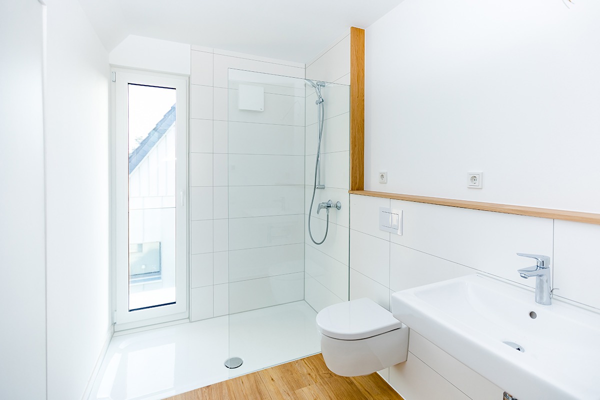 Natürlich glänzt das Mehrfamilienhaus nach KfW-40-Plus-Standard ebenso mit inneren Werten wie hervorragender Dämmung und automatischer Lüftung inklusive Wärmerückgewinnung. Der auf der Südseite des Daches per Photovoltaik erzeugte Strom wird zum Teil für den Betrieb der hauseigenen Wärmepumpe genutzt.