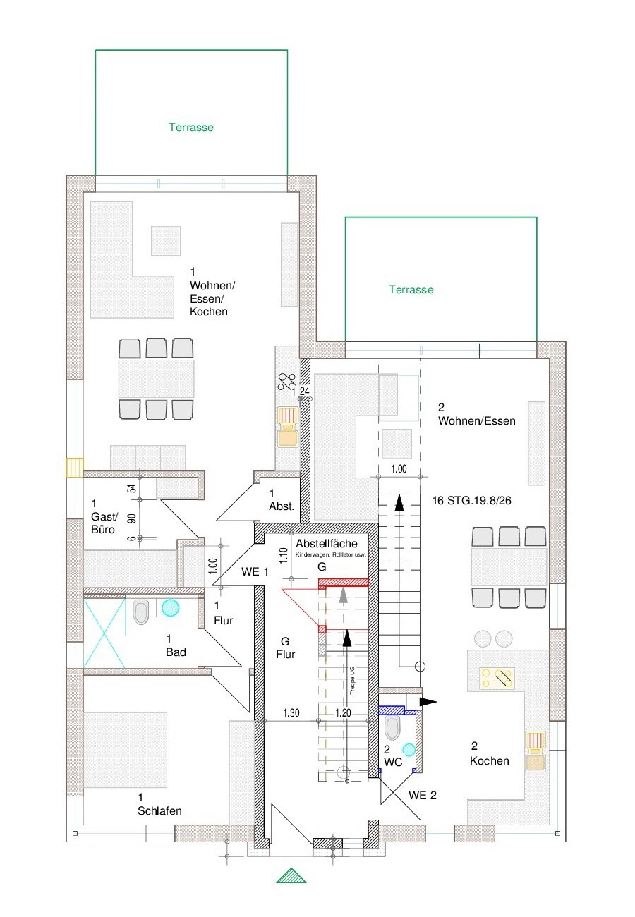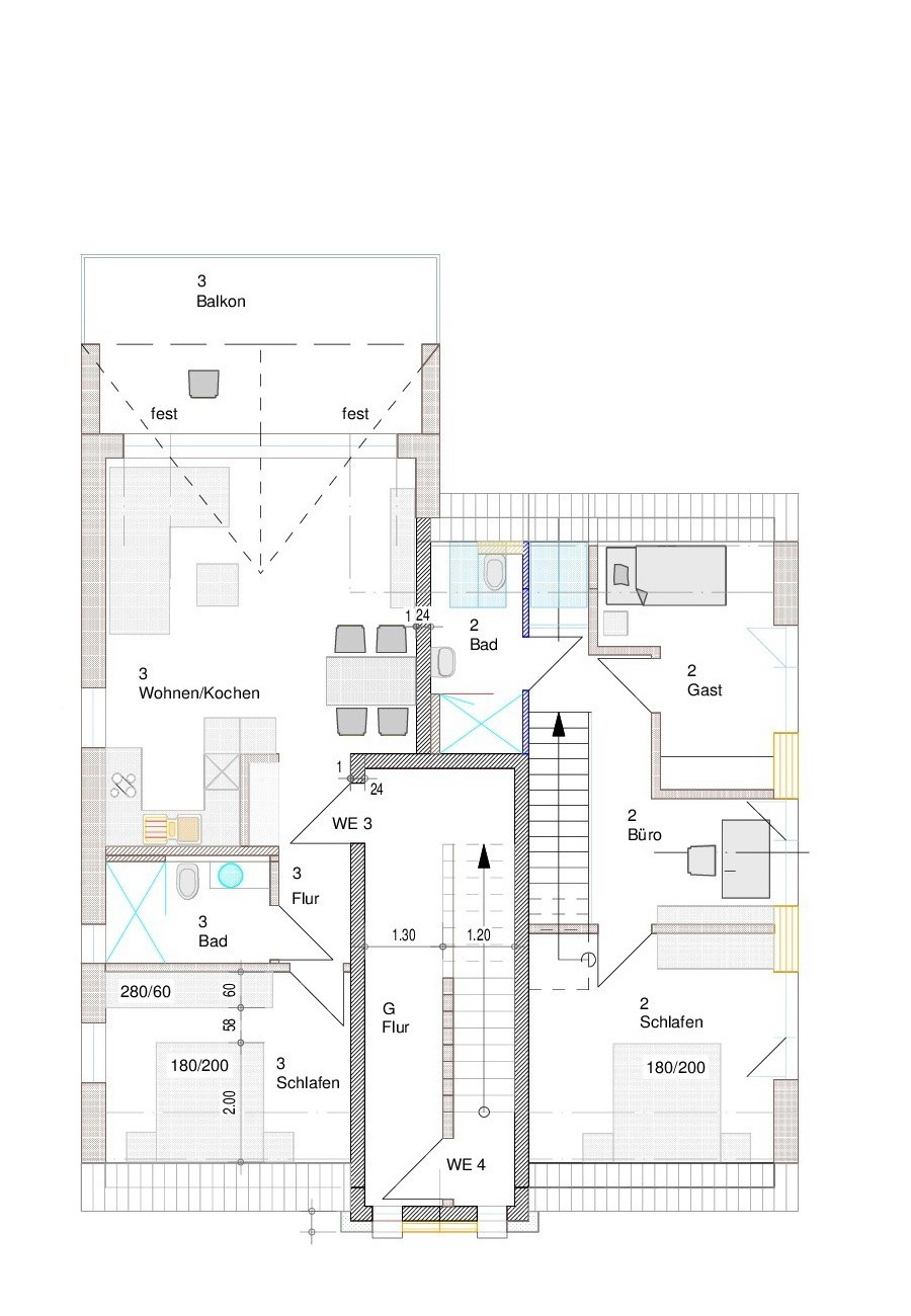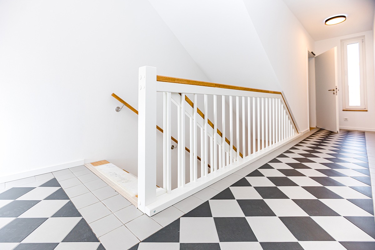 Natürlich glänzt das Mehrfamilienhaus nach KfW-40-Plus-Standard ebenso mit inneren Werten wie hervorragender Dämmung und automatischer Lüftung inklusive Wärmerückgewinnung. Der auf der Südseite des Daches per Photovoltaik erzeugte Strom wird zum Teil für den Betrieb der hauseigenen Wärmepumpe genutzt.