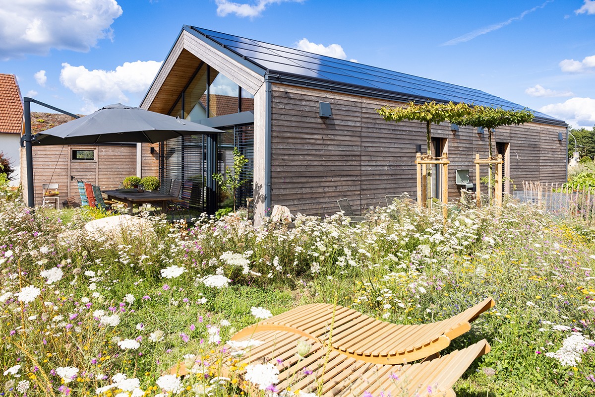 „Das Dach ist komplett mit PV-Modulen bestückt und liefert jede Menge ‚grünen‘ Strom, der entweder zwischengespeichert oder direkt vor Ort genutzt wird – unter anderem für die komplett elektrisch versorgte Infrarotheizung. Bei dieser Art von Wohnhäusern und insbesondere in der Kombination mit Photovoltaik ist dies die ideale Alternative zu Fußbodenheizungen oder Radiatoren – effizient, nachhaltig und wirtschaftlich zugleich“, sagt Daniel Aumüller von Holzbau Heggemann.